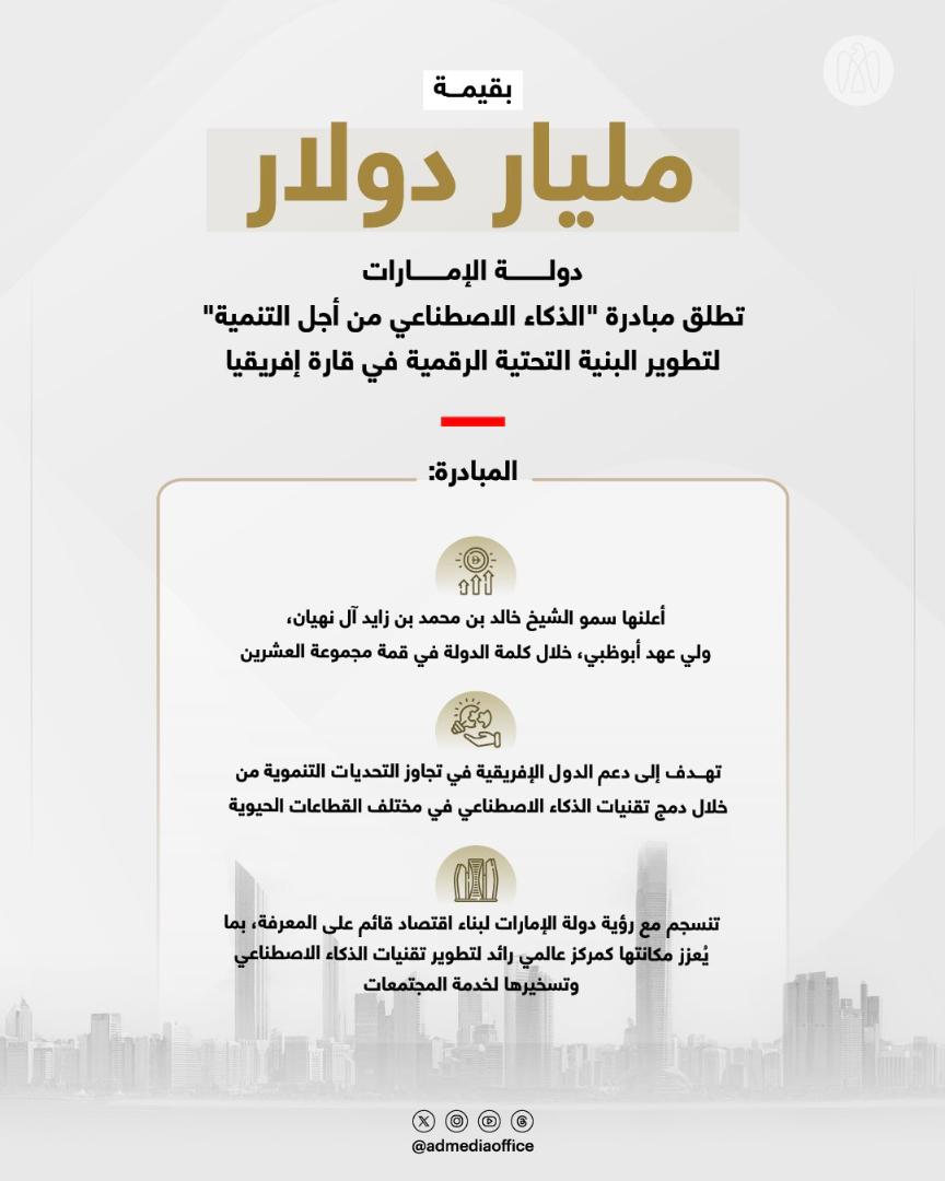 دولة الإمارات تُطلق خلال مشاركتها في قمة مجموعة العشرين مبادرة "الذكاء الاصطناعي من أجل التنمية"