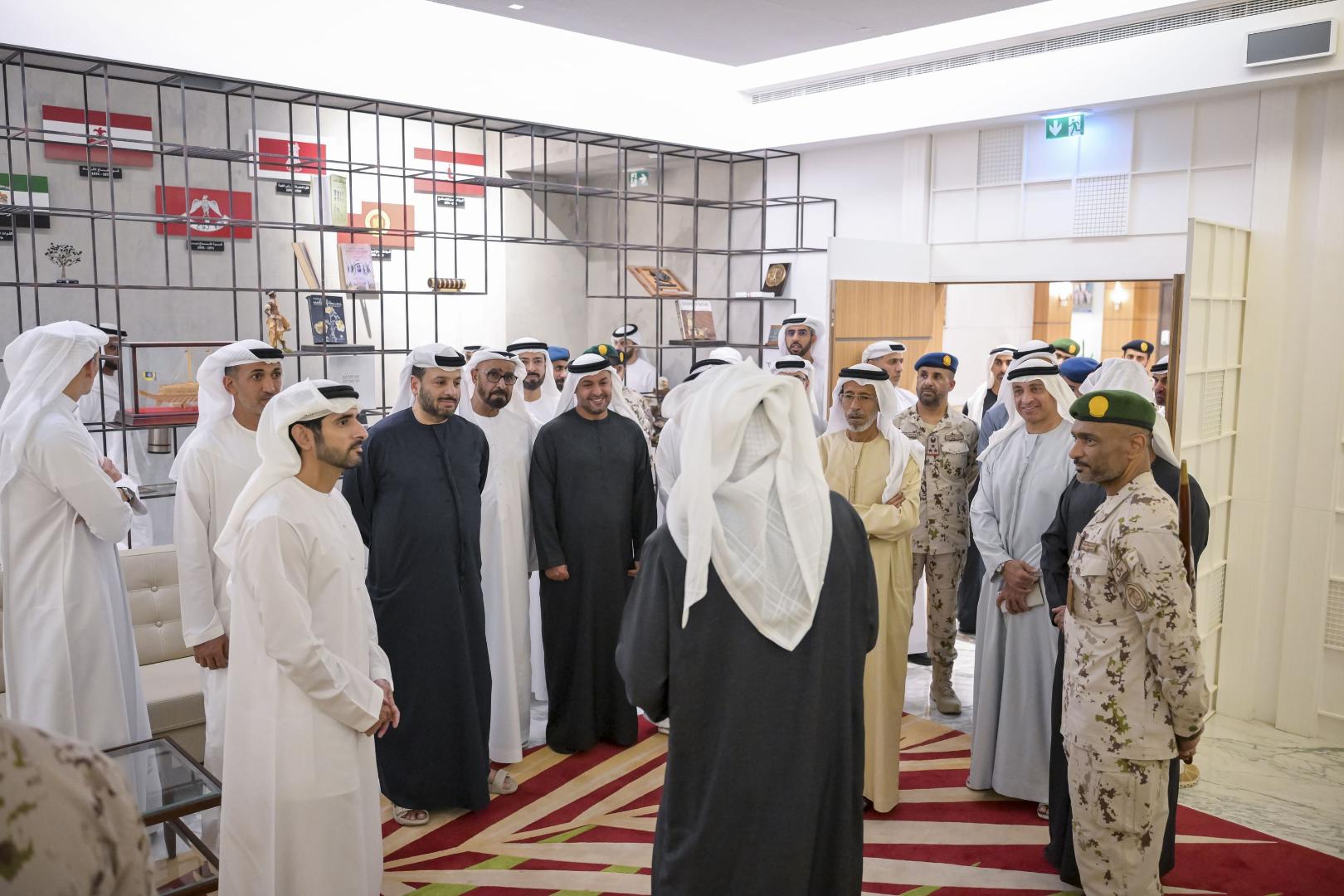 رافق صاحب السمو رئيس الدولة خلال الزيارة كل من..سمو الشيخ حمدان بن محمد بن راشد آل مكتوم، ولي عهد دبي نائب رئيس مجلس الوزارء، وزير الدفاع، وسمو الشيخ هزاع بن زايد آل نهيان، ممثل الحاكم في منطقة العين، وسمو الشيخ ذياب بن محمد بن زايد آل نهيان، نائب رئيس ديوان الرئاسة للشؤون التنموية وأسر الشهداء، ومعالي محمد بن مبارك بن فاضل المزروعي، وزير الدولة لشؤون الدفاع، ومعالي الفريق الركن إبراهيم ناصر العلوي وكيل وزارة الدفاع، ومعالي حمد محمد ثاني الرميثي مستشار الشؤون العسكرية لرئيس الدولة، ومعالي خلدون خليفة المبارك رئيس جهاز الشؤون التنفيذية، ومعالي فيصل عبد العزيز البناي مستشار رئيس الدولة لشؤون الأبحاث الإستراتيجية والتكنولوجيا المتقدمة وعدد من كبار ضباط وزارة الدفاع.