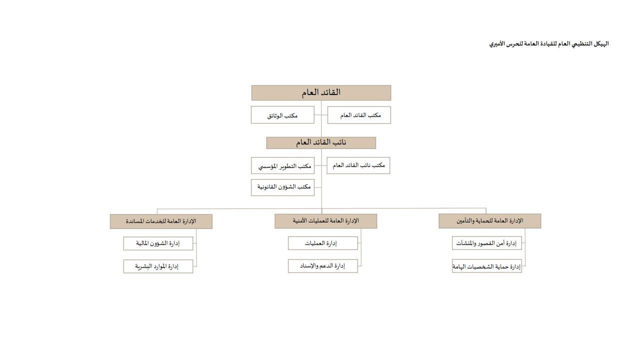 1. الهيكل التنظيمي التفصيلي للقيادة العامة للحرس الأميري، والقرارات اللازمة لتنفيذ هذا المرسوم بما في ذلك اعتماد التوصيف الوظيفي لمهام الوحدات التنظيمية في القياد العامة بما يتفق مع اختصاصاتها.