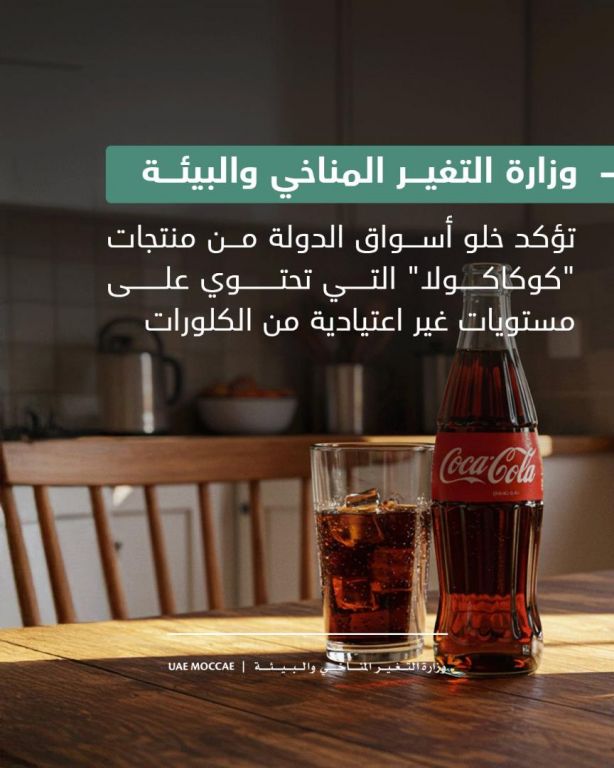 أكدت وزارة التغير المناخي والبيئة، بالتعاون مع السلطات الرقابية المحلية، خلو أسواق الدولة من منتجات كوكاكولا التي تحتوي على مستويات غير اعتيادية من الكلورات، وأن جميع المنتجات المشار إليها والمتداولة في الأسواق المحلية آمنة ومطابقة لاشتراطات ومعايير السلامة الغذائية في الإمارات. يأتي ذلك في إطار متابعة ما تداولته وسائل الإعلام عن قيام شركة "كوكاكولا يوروباسيفيك"، بسحب بعض المنتجات التي تم تصنيعها في موقع الشركة في بلجيكا . إن المنتجات المتداولة في أسواق الإمارات غير خاضعة لهذا السحب، حيث يتم إنتاجها محلياً في مصانع كوكاكولا للتعبئة الكائنة في إمارة أبوظبي. وتجدد الوزارة تأكيد التزامها المستمر بمراقبة سلامة الأغذية وحماية صحة المستهلكين، من خلال التنسيق الدائم مع جميع الجهات المعنية.