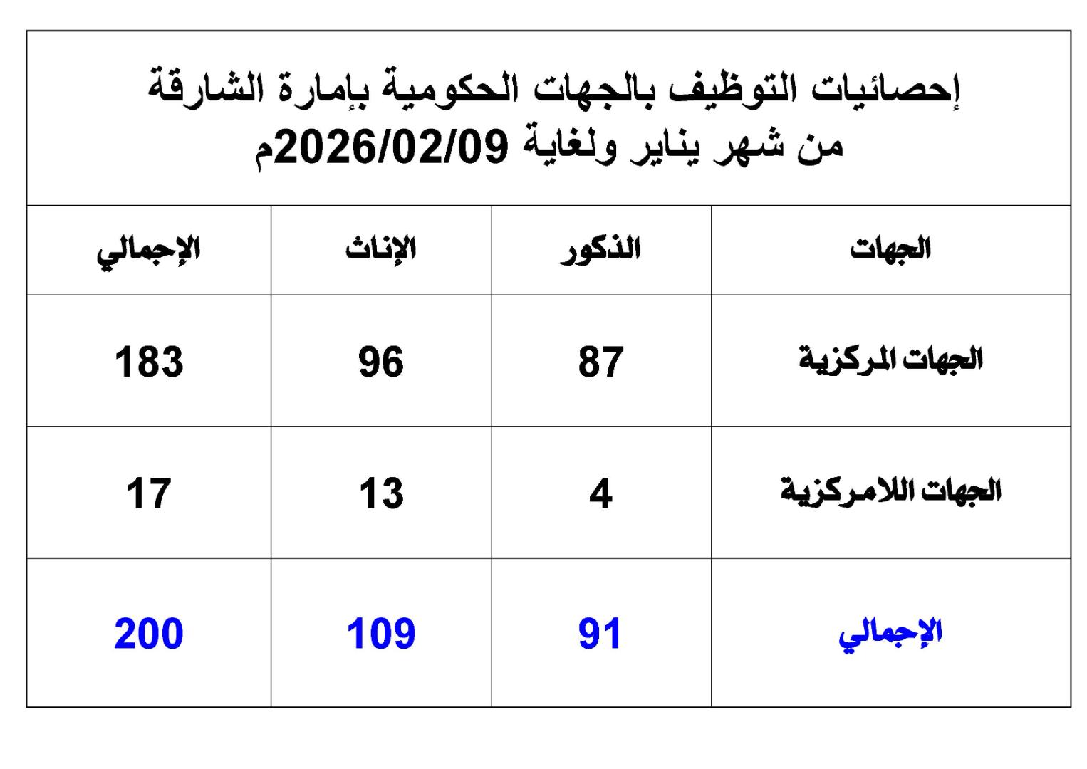 200 وظيفة بالجهات الحكومية في إمارة الشارقة حتى 9 فبراير الجاري